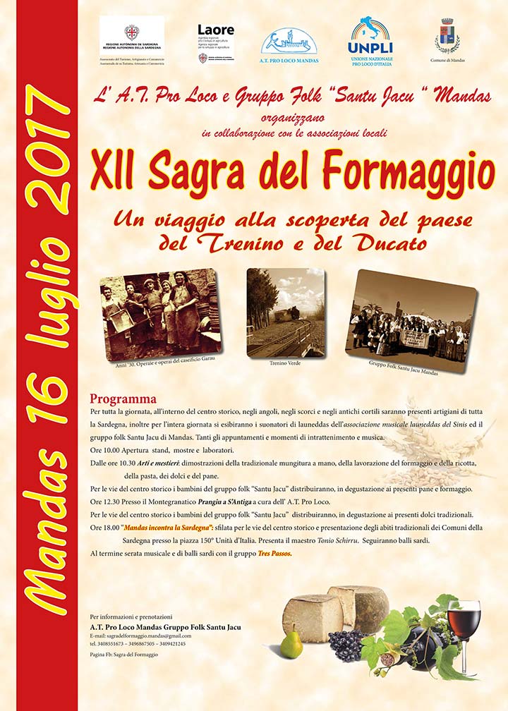 Programma Sagra del Formaggio 2017 di Mandas (Centro-Sud Sardegna), 16 luglio
